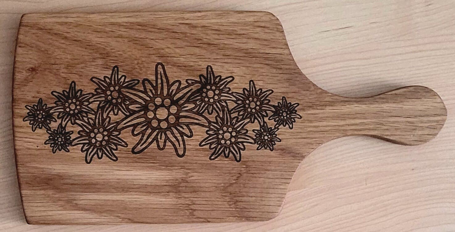 Ich realisiere verschiedenste Designs mit höchster Präzision. Ob massgefertigte Teile, filigrane Gravuren, exklusive Schneidebretter oder andere individuelle Projekte – jedes Stück entsteht mit Sorgfalt und einem Fokus auf Qualität und Detailgenauigkeit.